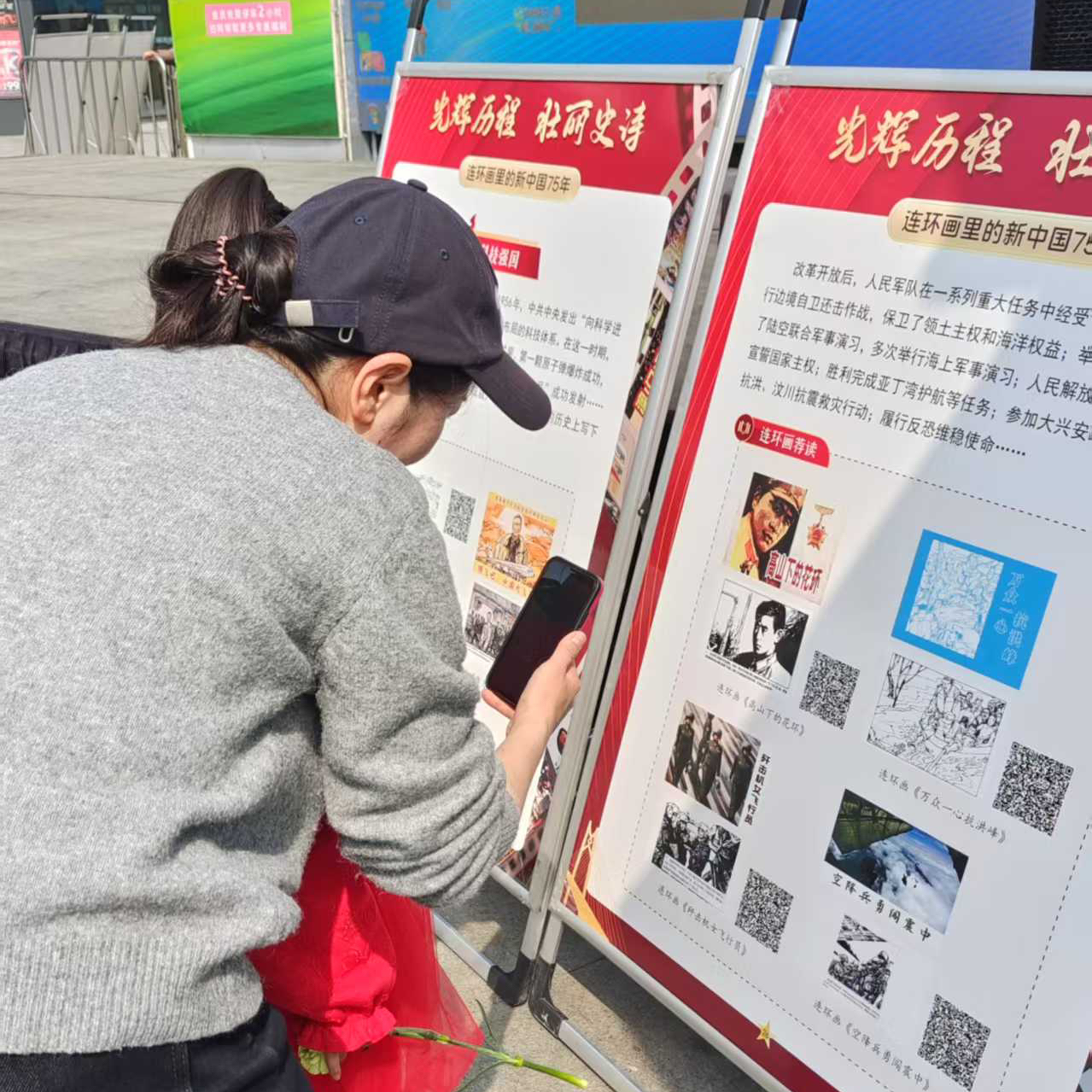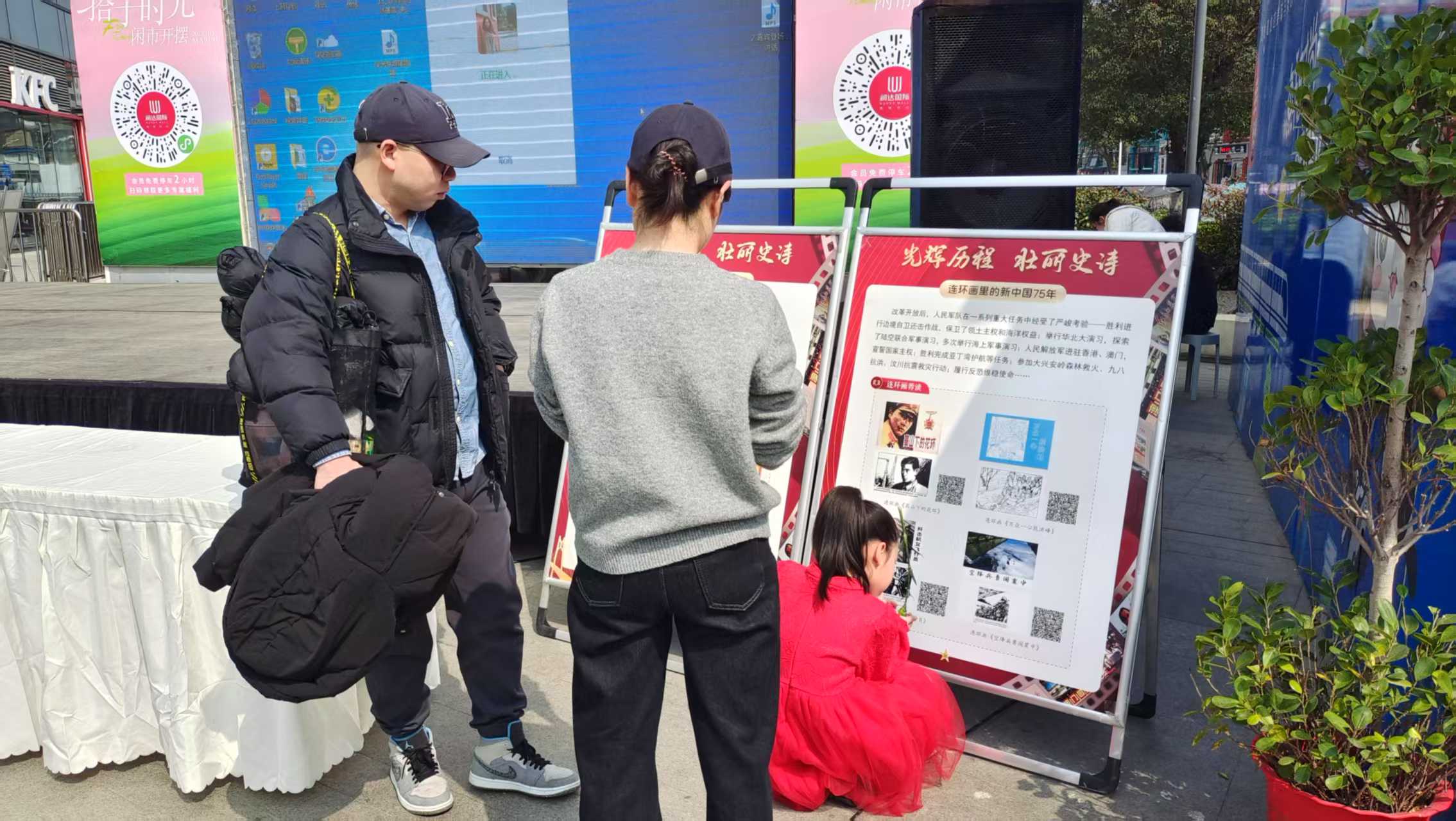 活动现场的“阅读+”文化长廊成为人气焦点。主题展区各具特色:“与时代同行”展区以图文并茂的形式展现祖国75年发展成就,馆员通过互动问答带领孩子们“穿越”历史长河,感受国家发展锚泊,厚植家国情怀;“好书点亮人生”展区精选豆瓣高分经典书目、中学生读佳作及《繁花》、《流浪地球》等热门影视原著,吸引了不少家长驻足或拍照记录或现场扫码获取电子书单。