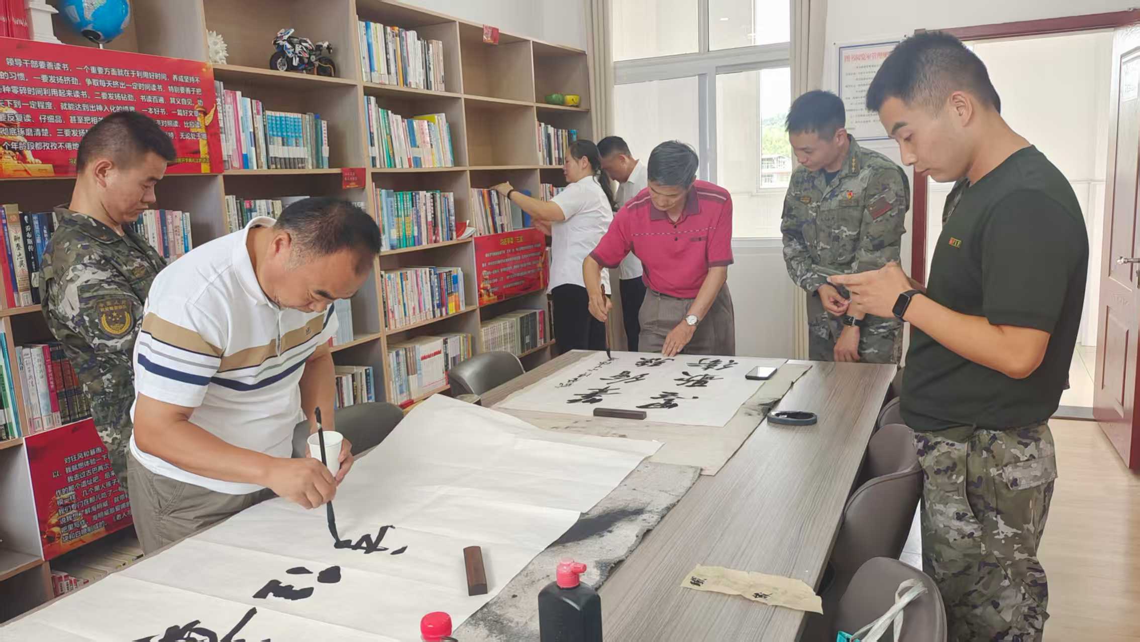 为庆祝中国人民解放军建军98周年,弘扬拥军优属、拥政爱民的光荣传统。7月31日上午,浠水县文化和旅游局、浠水县图书馆组织县楹联协会、县老年书法协会、夕阳红艺术团等单位共同走进县武警中队,开展“迎八一,送文化”活动,为武警官兵送上了一份丰富的文化盛宴。