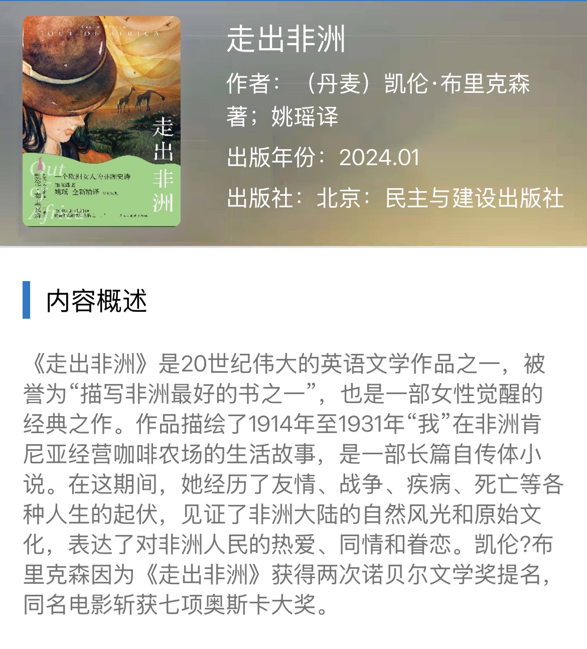 凯伦·布里克森著,姚瑶翻译